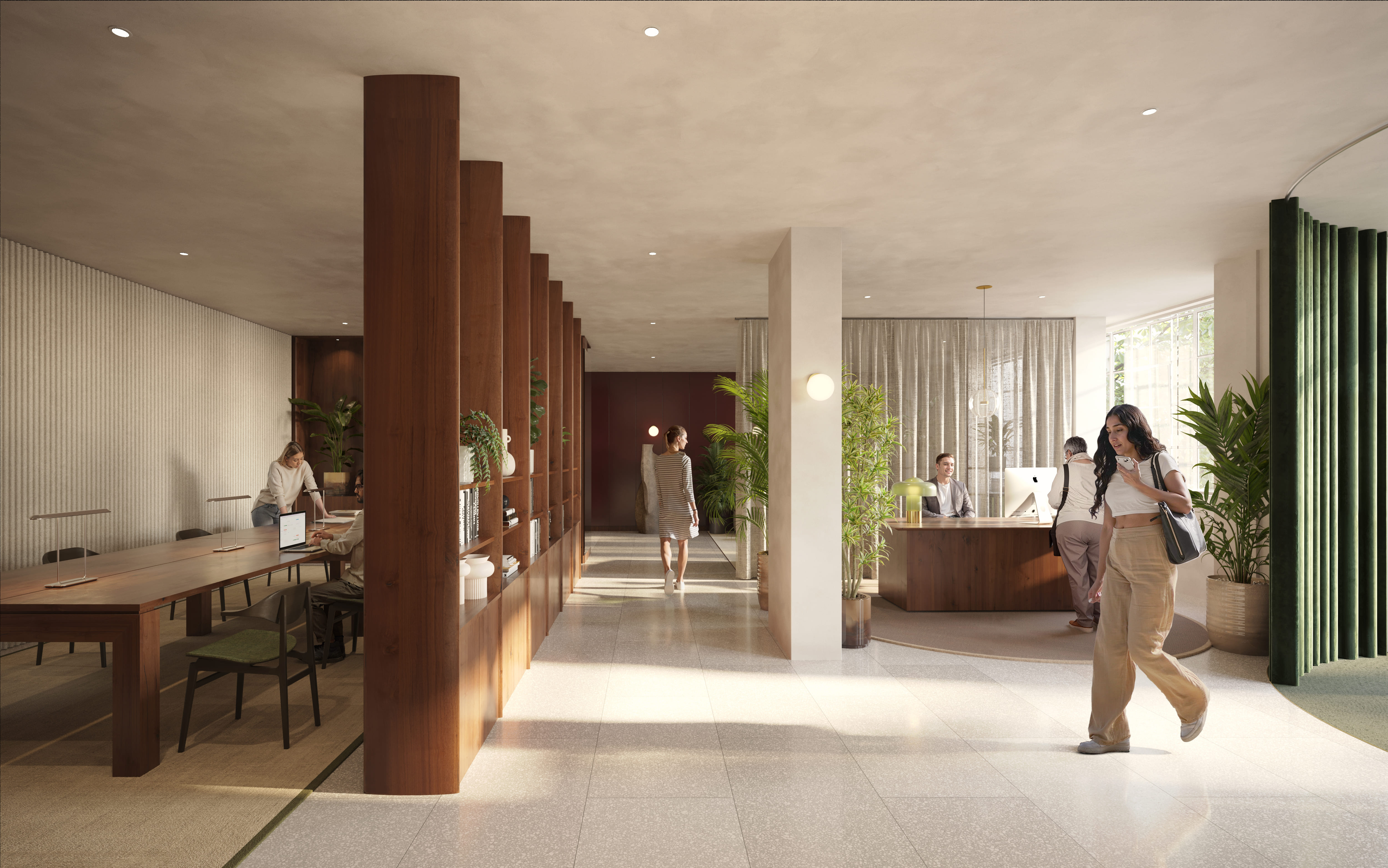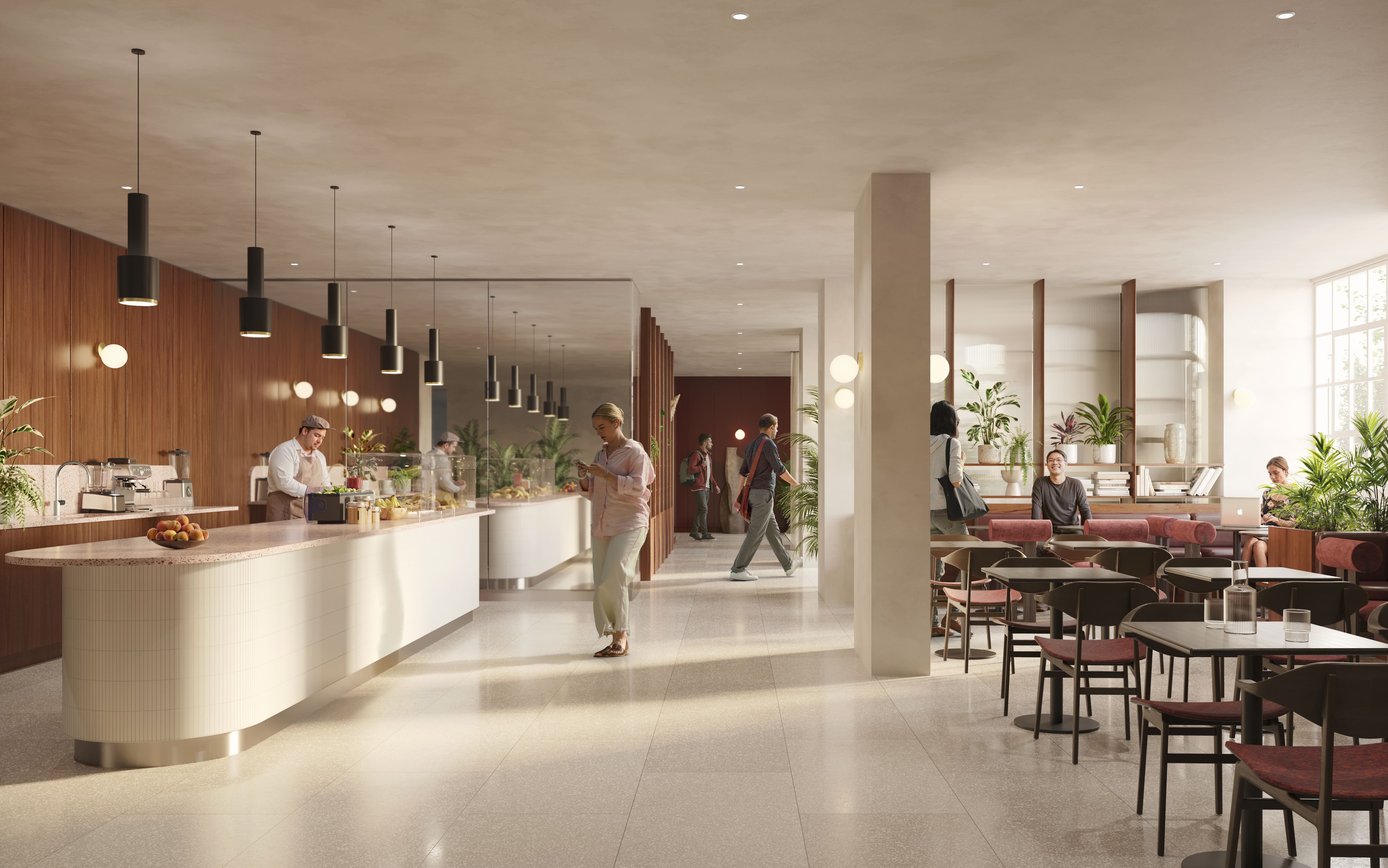 Delivering an improved arrival experience through a new club-style reception and lounge space that fosters ideation and collaborative work, complimented by a new on-site healthy café by local, female-owned LUNAR.