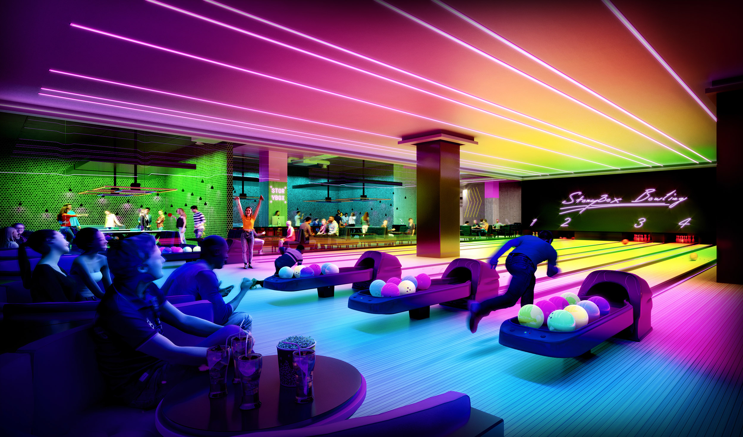 With a floor plate of 1.5 acres, and factoring in the exceptional ceiling heights that can accommodate a double decker bus, the usable volume of that space is 1 million cubic feet - now home to world renowned go-karting experience operator K1 Speed.